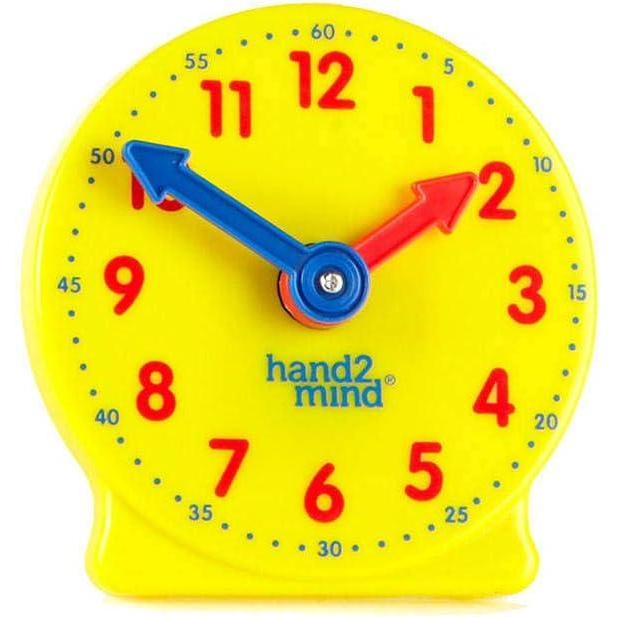 Hand2mind Mini Geared Clock for Teaching and Learning to Tell Time – Analog Learning Clock for Kids and Classrooms (Set of 12), Yellow