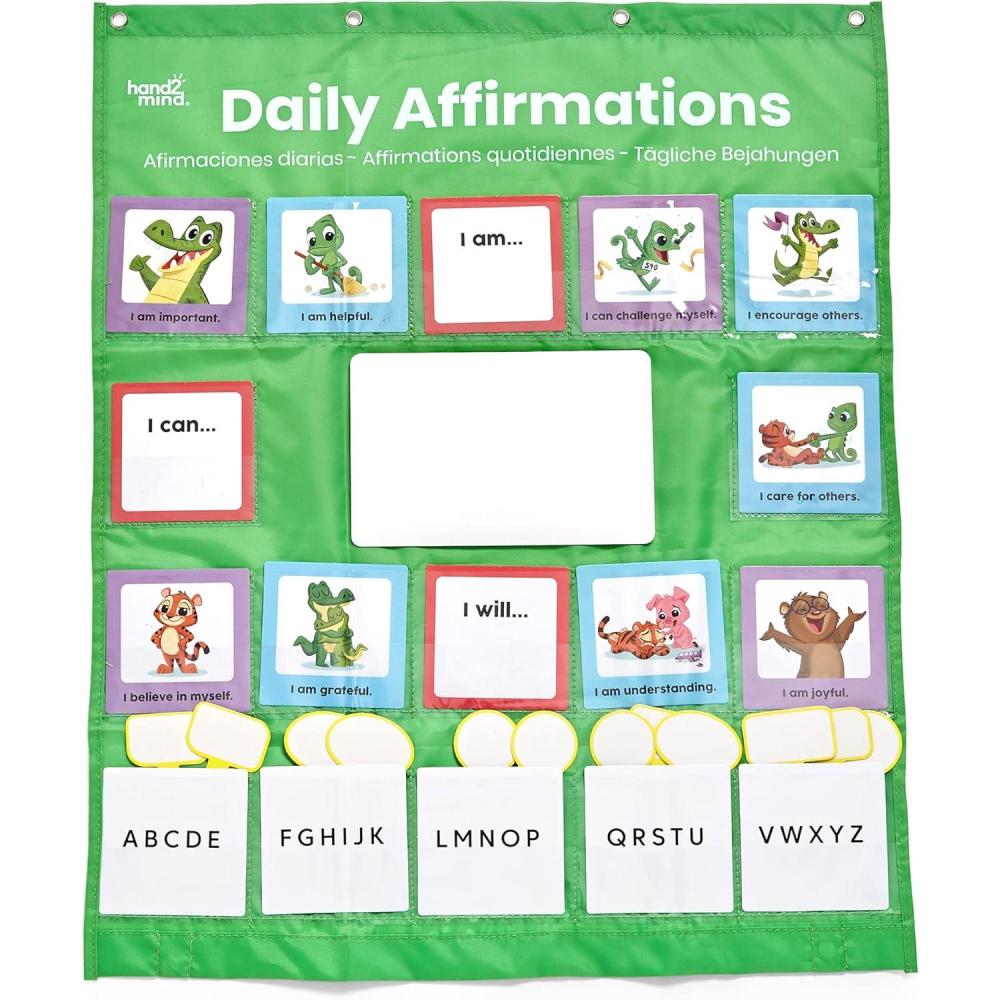 hand2mind Daily Affirmations Pocket Chart, Positive Affirmation Cards for Kids, Growth Mindset for Kids, Calming Corner Classroom Decor, Social Emotional Learning, Preschool Teacher Supplies
