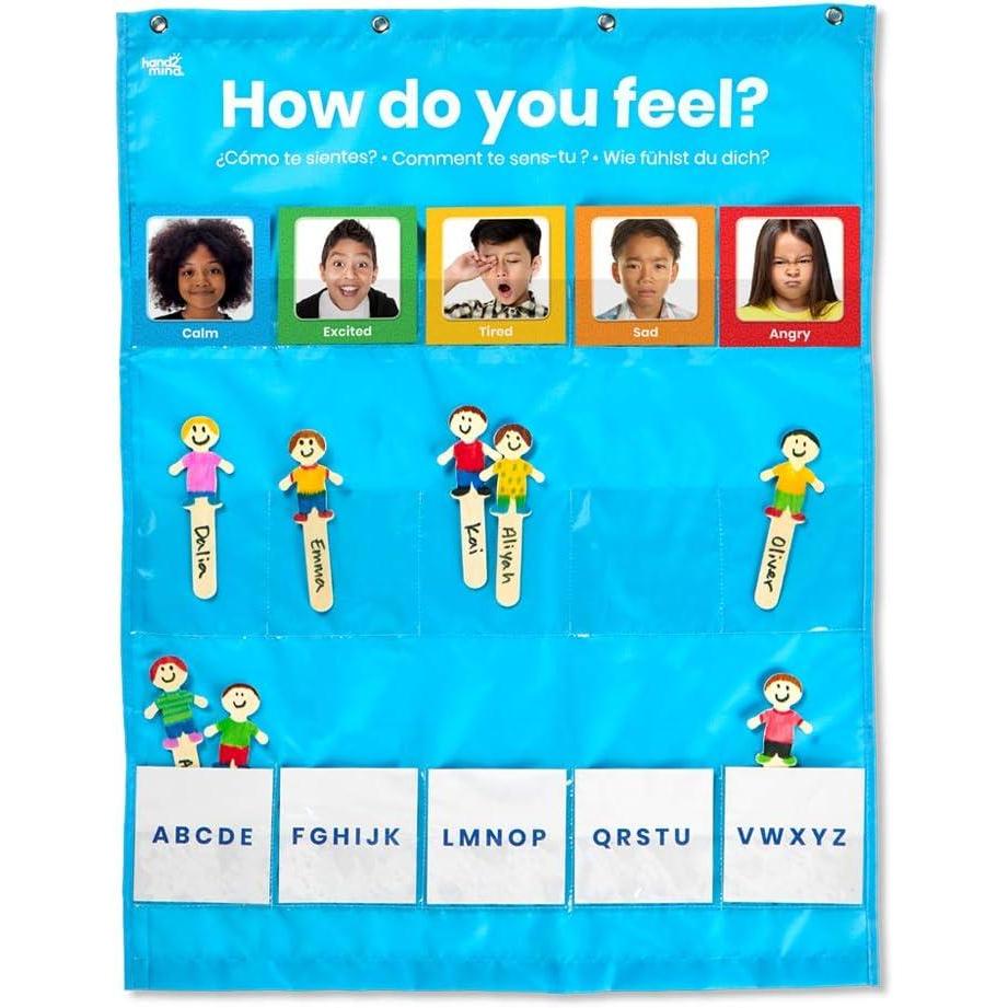 hand2mind Express Your Feelings Pocket Chart, Emotions Chart for Kids, Classroom Decorations for Preschool Teachers, Daycare Decor, Social Emotional Learning Activities, Calm Down Corner Supplies