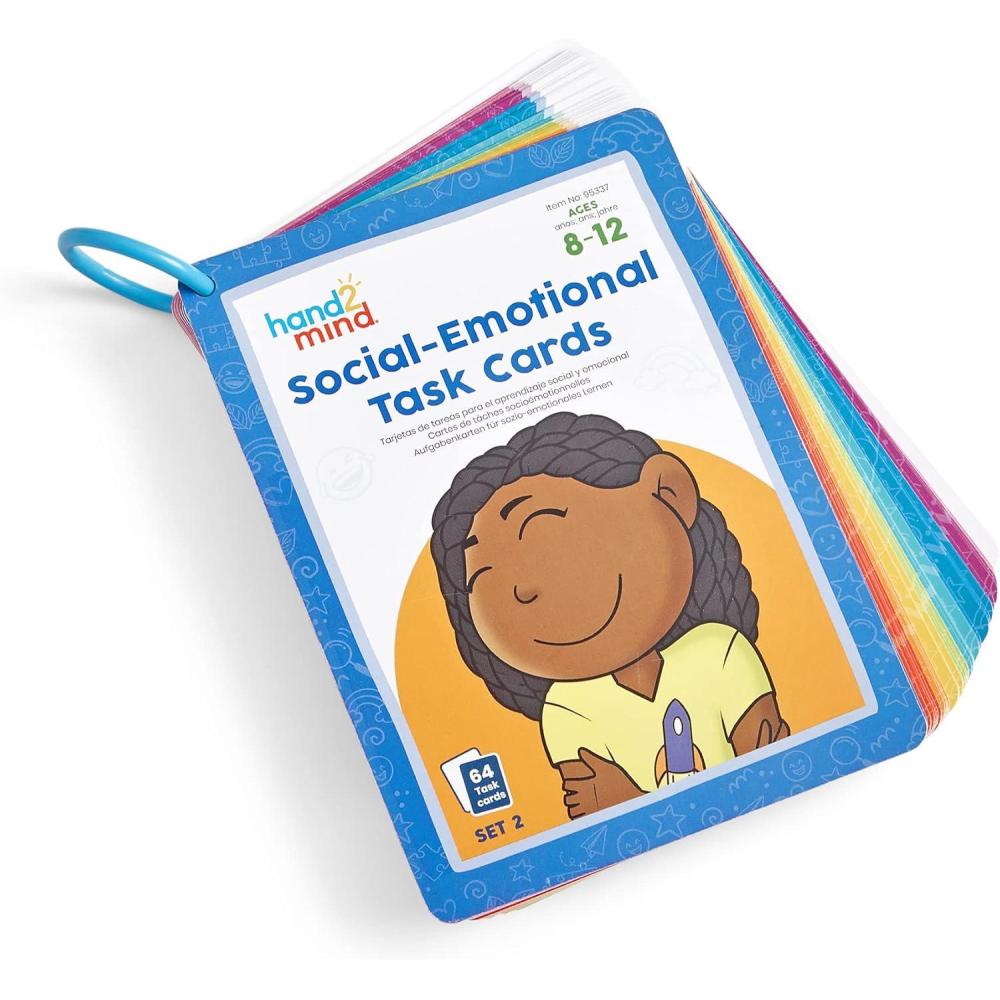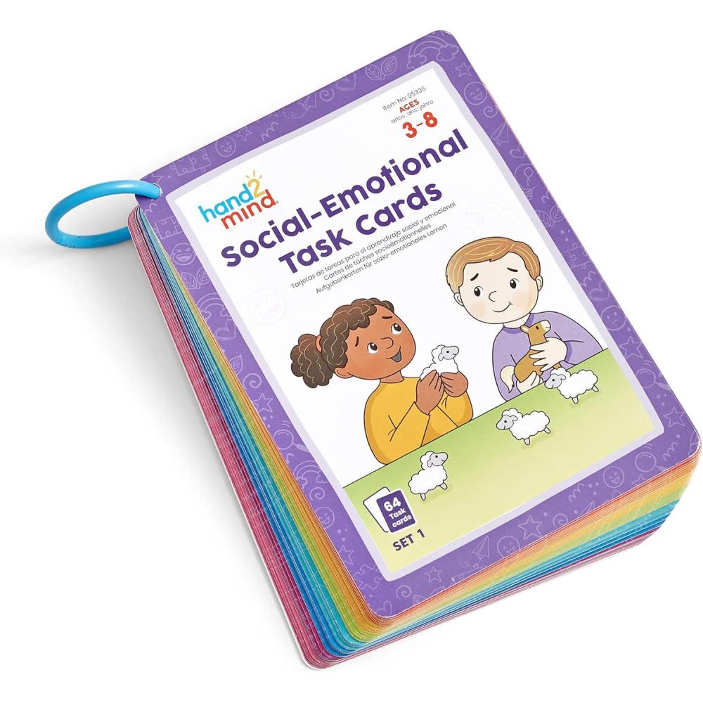hand2mind Social Emotional Task Cards for Ages 8 , Social Emotional Learning, Play Therapy Toys for Counselors, Social Skills Activities for Kids, Conversation Starters, Emotional Regulation for Kids(Ages 3 Set)