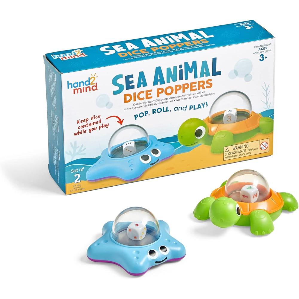 hand2mind Sea Animals Dice Poppers, Math Dice Popper, Game Replacement Dice Roller, Dice Games for Kids, Board Game Accessories, Family Game Night, Kids Travel Activity, Fun Classroom Games (Set of 2)