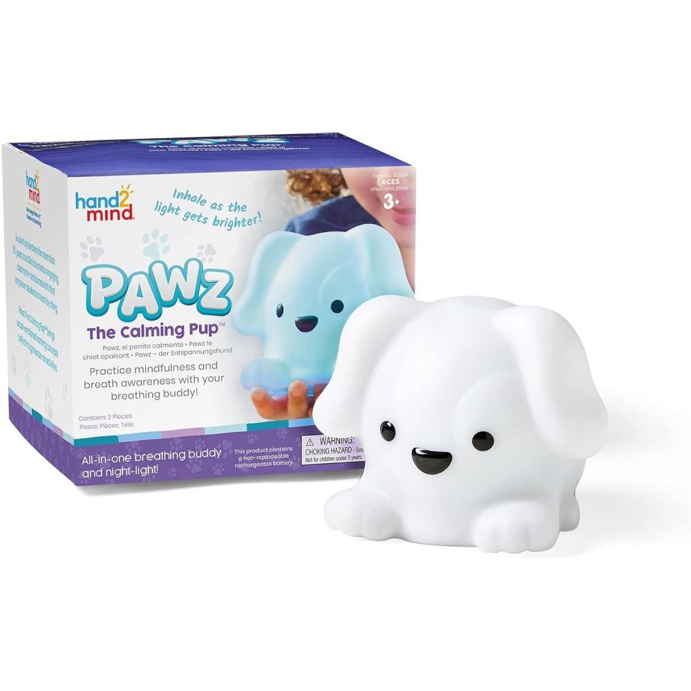 hand2mind PAWZ The Calming Pup, Learn Deep Breathing, Rechargeable Animal Night Light, Kids Anxiety Relief, Mindfulness for Kids, Calm Down Corner Supplies, Social Emotional Learning Activities(PAWZ)